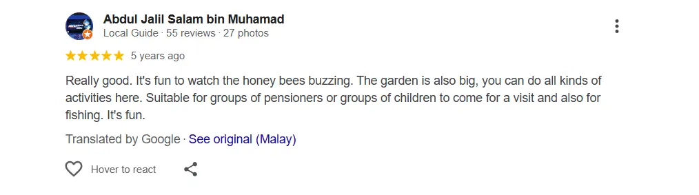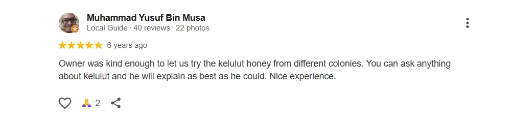 Kalau ada masa lapang, jemputlah singgah ke ladang madu kelulut kami. Tekan saja google maps ini untuk ke ladang kami!
