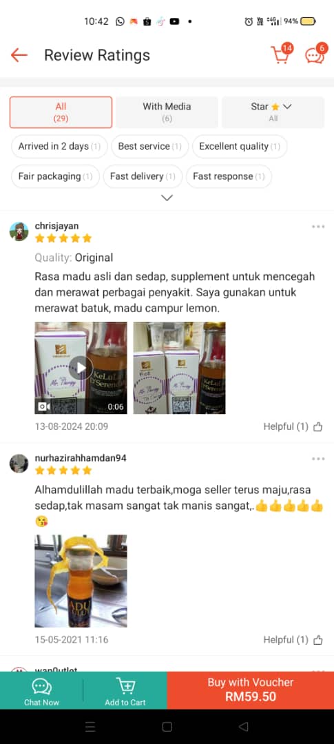 "Lepas amalkan madu ni, badan rasa lebih bertenaga & jarang batuk dah. "